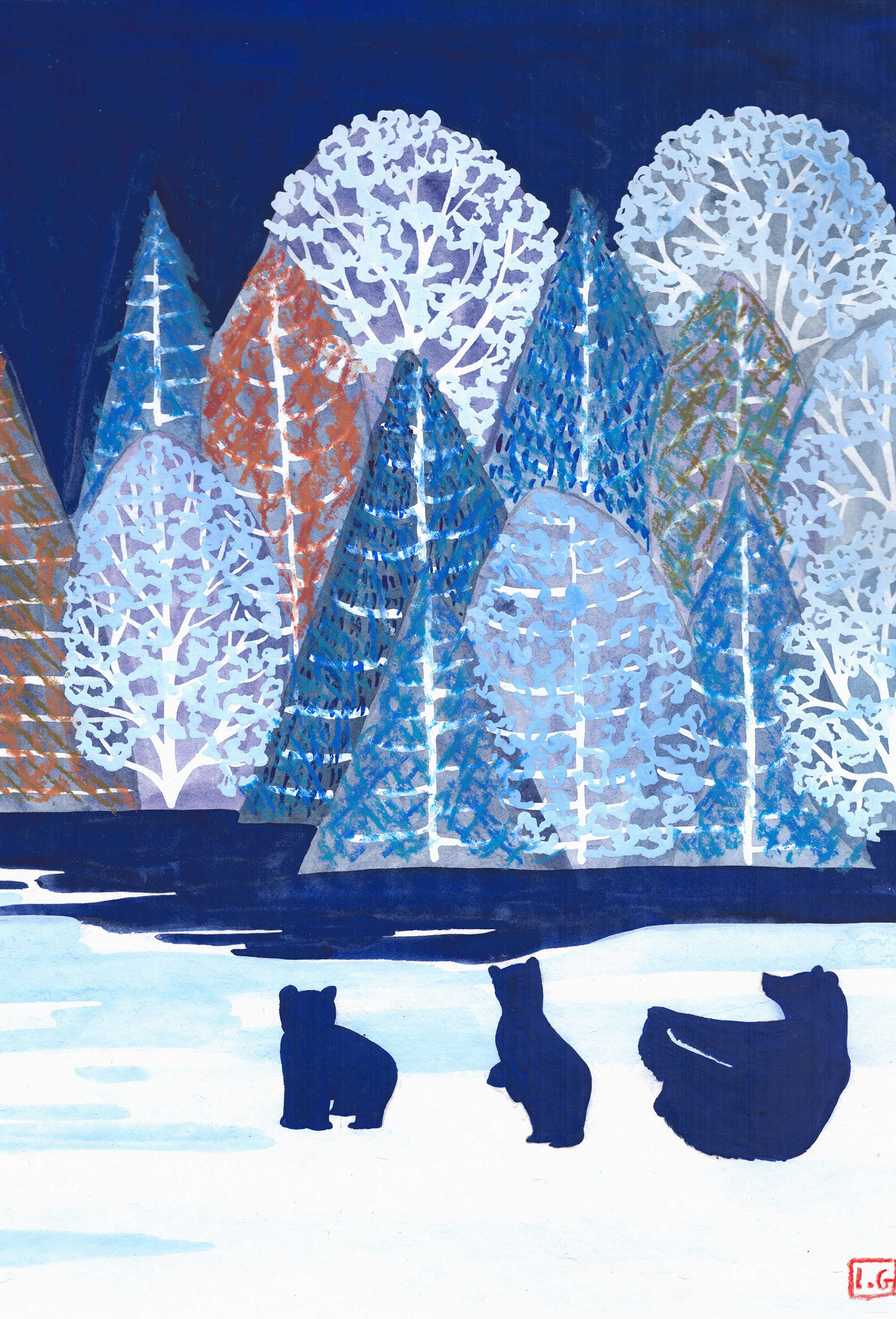 Les trois ours-2021, tempera et craie- 200€