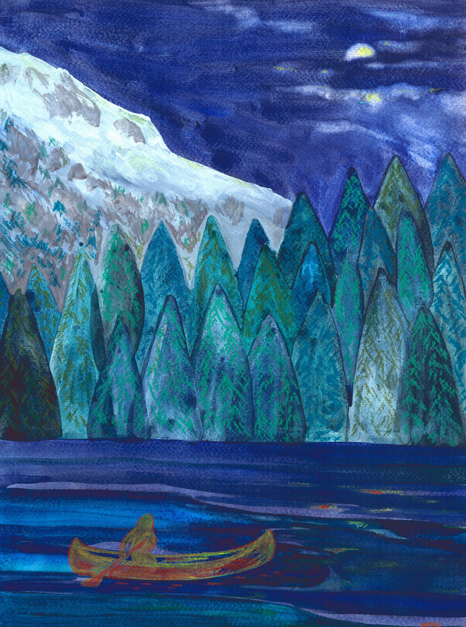 Canoé Baie 2021, tempera et craie 30 x 42 cm - 220 €