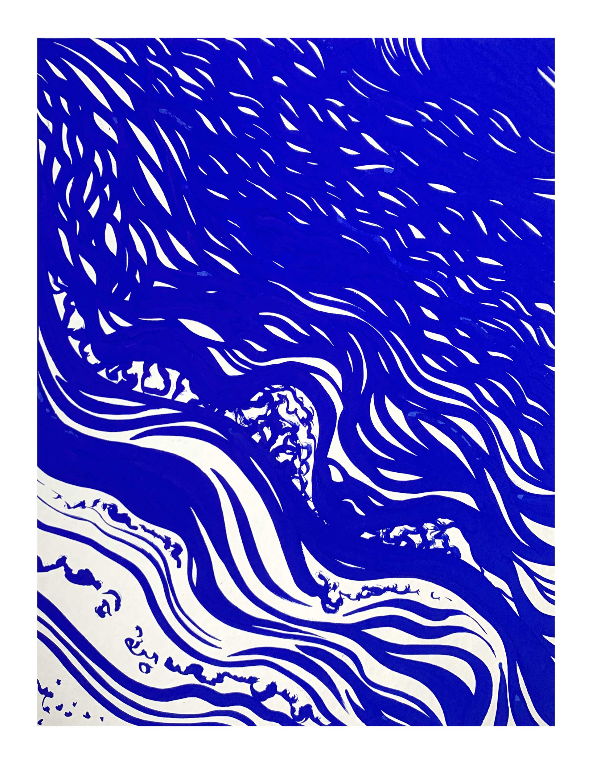 Vague juillet 24, Papier chiffon 350gr. 50 X 65 cm